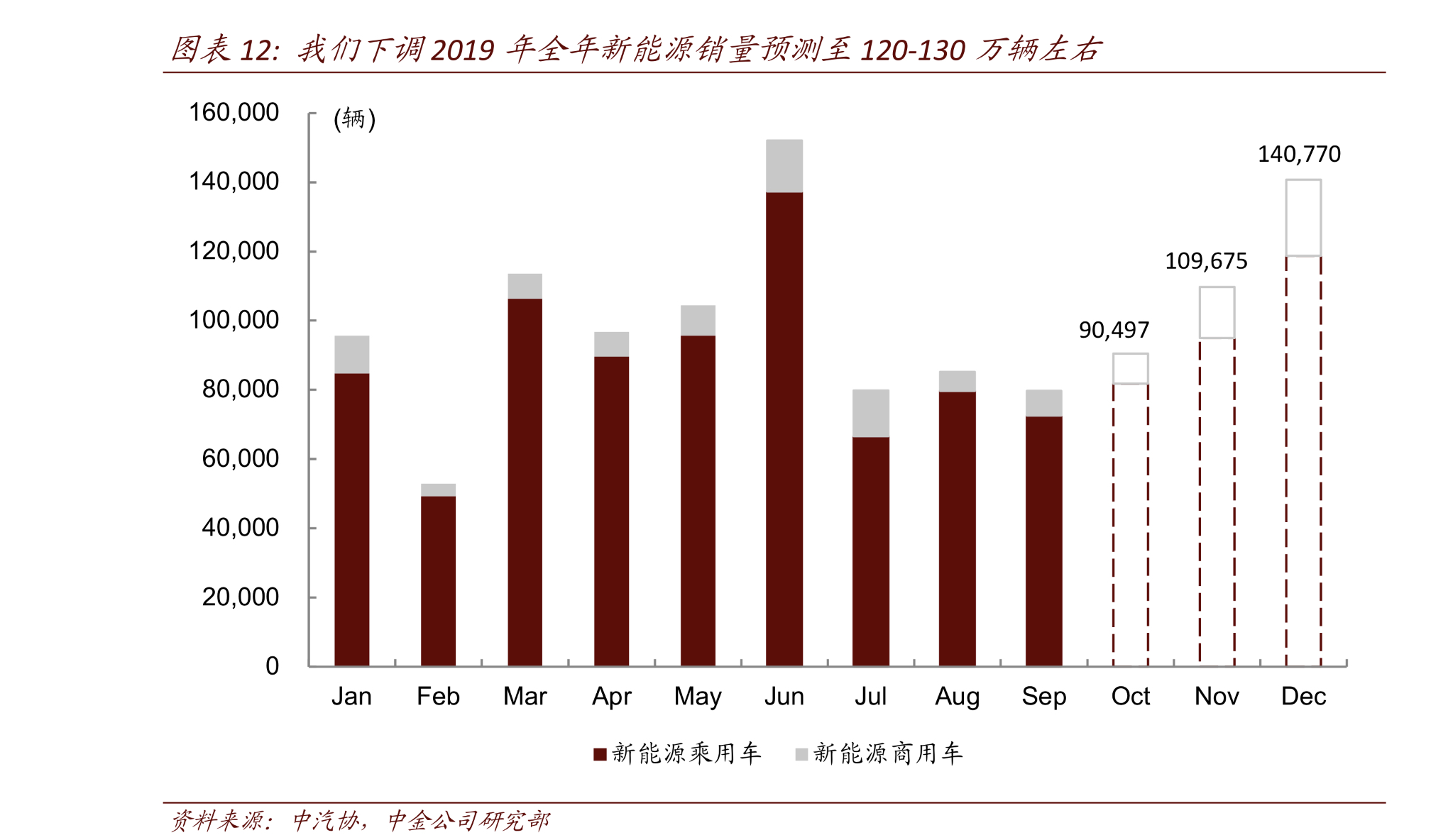 10月22日,中金公司发布 《汽车及零部件行业动态:新能源汽车销量三连跌背后的原因》研究报告(以下简称“报告”),将2019年新能源汽车销量预期从此前的130-140万辆下调至120-130万辆。这一数字与2018年基本持平。
