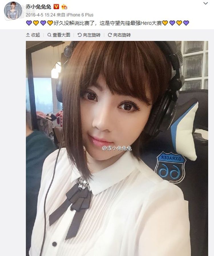 2016年初,小兔拿到了《守望先锋》美服内测账号,早早开始接触这款游戏。在朋友的推荐下,她加入了一支守望先锋女子战队,也正是从这时开始,她正式成为一名主播。