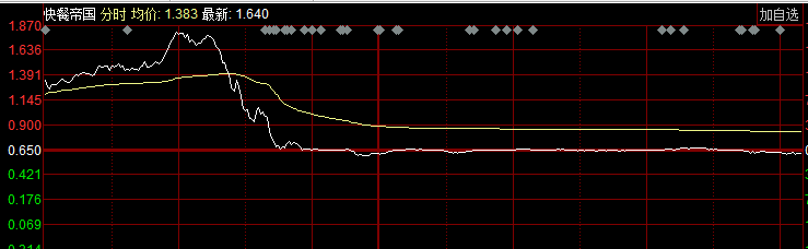 从上市首日表现来看,快餐帝国着实令人捏一把汗。开盘报1.19港元/股,而后股价如坐了过山车般大起大落,盘中大涨187%,随后快速跳水股价破发,截至收盘跌6.15%,报0.61港元/股。