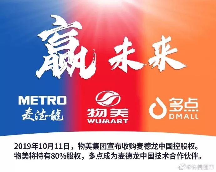 10月,备受关注的麦德龙中国卖身传闻也迎来终章,接盘方为物美。交易完成后,物美集团将在双方设立的合资公司中持有80%股份,麦德龙继续持有20%股份,多点将成为麦德龙中国的技术合作伙伴,该交易预计最迟在2020年第二季度完成交割。麦德龙中国总裁康德表示,被收购后,麦德龙中国的管理层和员工架构不变,门店保持麦德龙品牌不变,未来也依旧会以麦德龙品牌在中国市场发展新店。