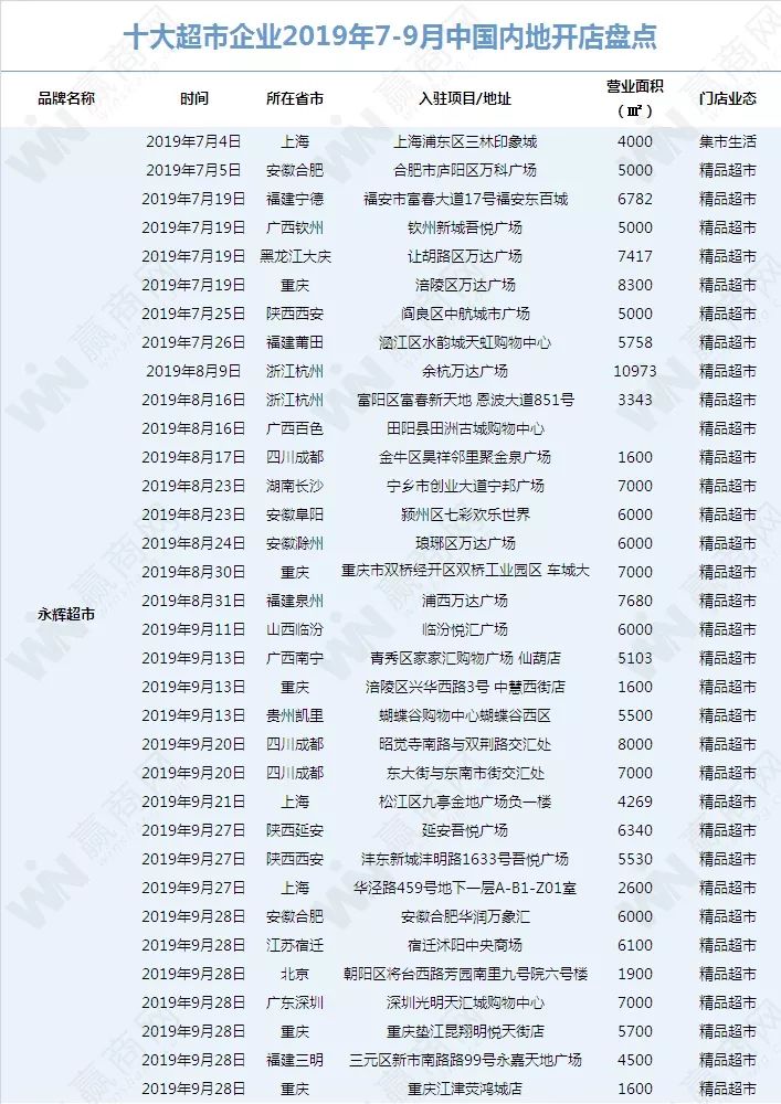 *****✦* 10个超市品牌开店66家永辉占比过半****
