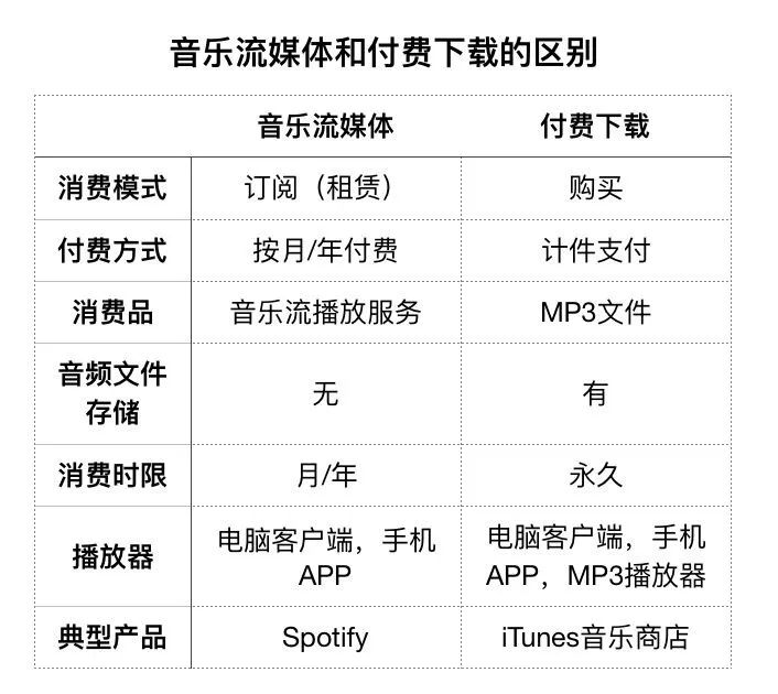 “数字专辑”(含数字单曲)是一个中国特有的数字音乐消费模式,在国外,流媒体服务和单曲/专辑下载是严格区分开的,前者以spotify为代表,不提供任何音频下载,只提供线上收听服务,而后者以AppleMusic为代表,用户购买之后就用就拥有了音频文件。数字专辑则糅合了两者的特点,是一个包括了下载、在线播放、增值服务等在内的数字音乐体验包。