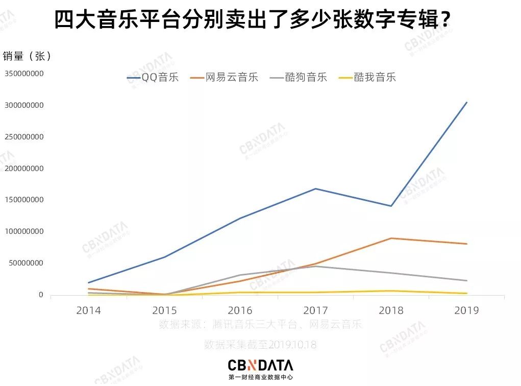 从2014年12月发布第一张数字专辑以来,到2018年3月31日,QQ音乐累计发行了355张数字专辑,超4000万人从这里购买了近6000万张专辑,营收近4亿。今天,数字专辑已经成为国内音乐版权方的收入来源之一,更成了粉丝battle偶像人气的新战场。