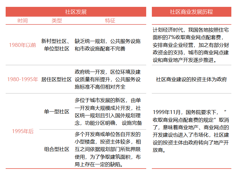 到了90年代中后期,城市化进程步步推进,社区建设进入快车道,投资主体由政府转向了地产开发商,“因商而住”的社区商业立稳脚跟。