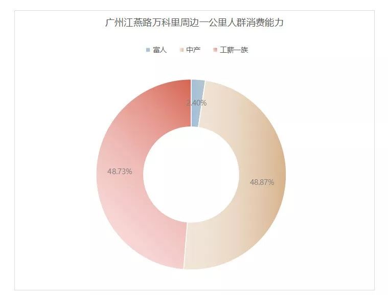 - 家庭消费业态压倒零售,构建“社区客厅”:项目周边1公里占比48.9%的中产、48.7%的工薪阶层为项目主力消费群体。
