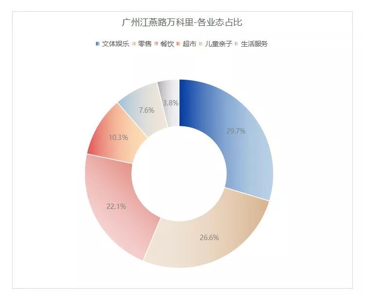 以上,不难看出,万科在向城市外围发力,社区项目多选在城市非主流商圈的大型居住社区,服务性、餐饮、儿童亲子类业态压倒零售,打破传统社区商业固有的业态布局。