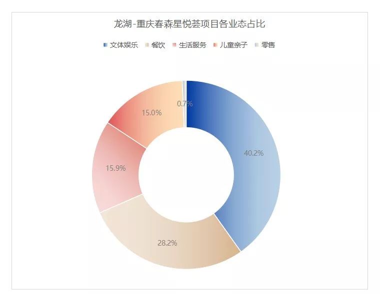 立足于高收入家庭,星悦荟的业态呈现出家庭式消费压倒零售业态特点,其中重庆春森星悦荟的零售业态占比仅为0.67%,而休闲娱乐占比高达40%。