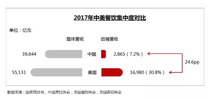 《2019中国餐饮加盟行业白皮书》数据显示,2017年,全国餐饮收入3.96万亿元,2018年同比增长7.8%,突破4.2万亿餐饮业规模位列世界第二。但在连锁化和集中化程度方面,我国餐饮业依然呈现小而散的特征。