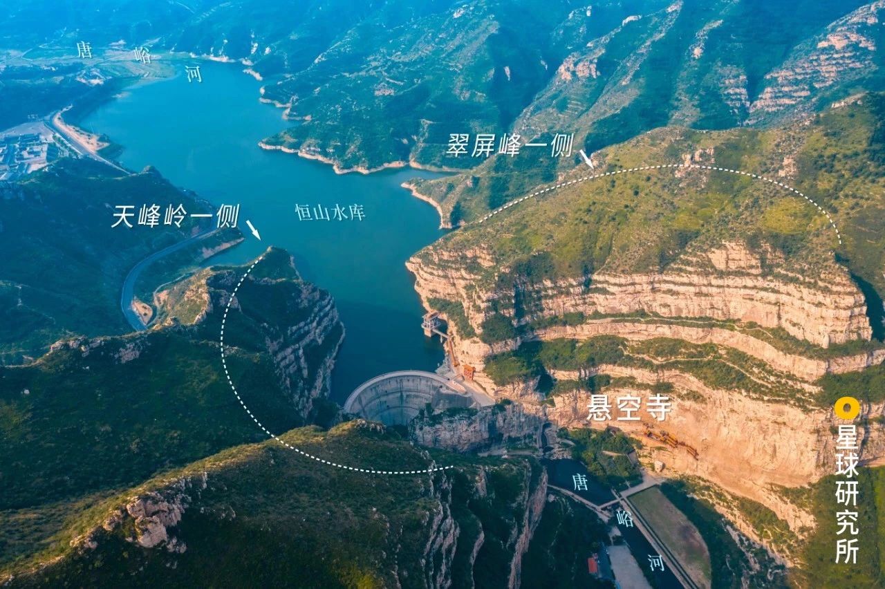 (左为悬空寺,右为唐峪河,摄影师@杨柳岸)