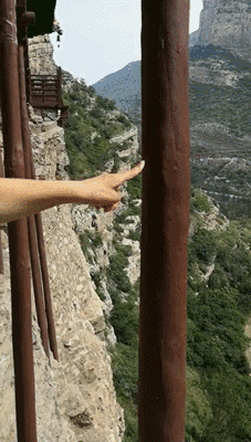 (山体上的石孔即为北魏栈道遗迹,位于悬空寺附近,摄影师@杨柳岸)