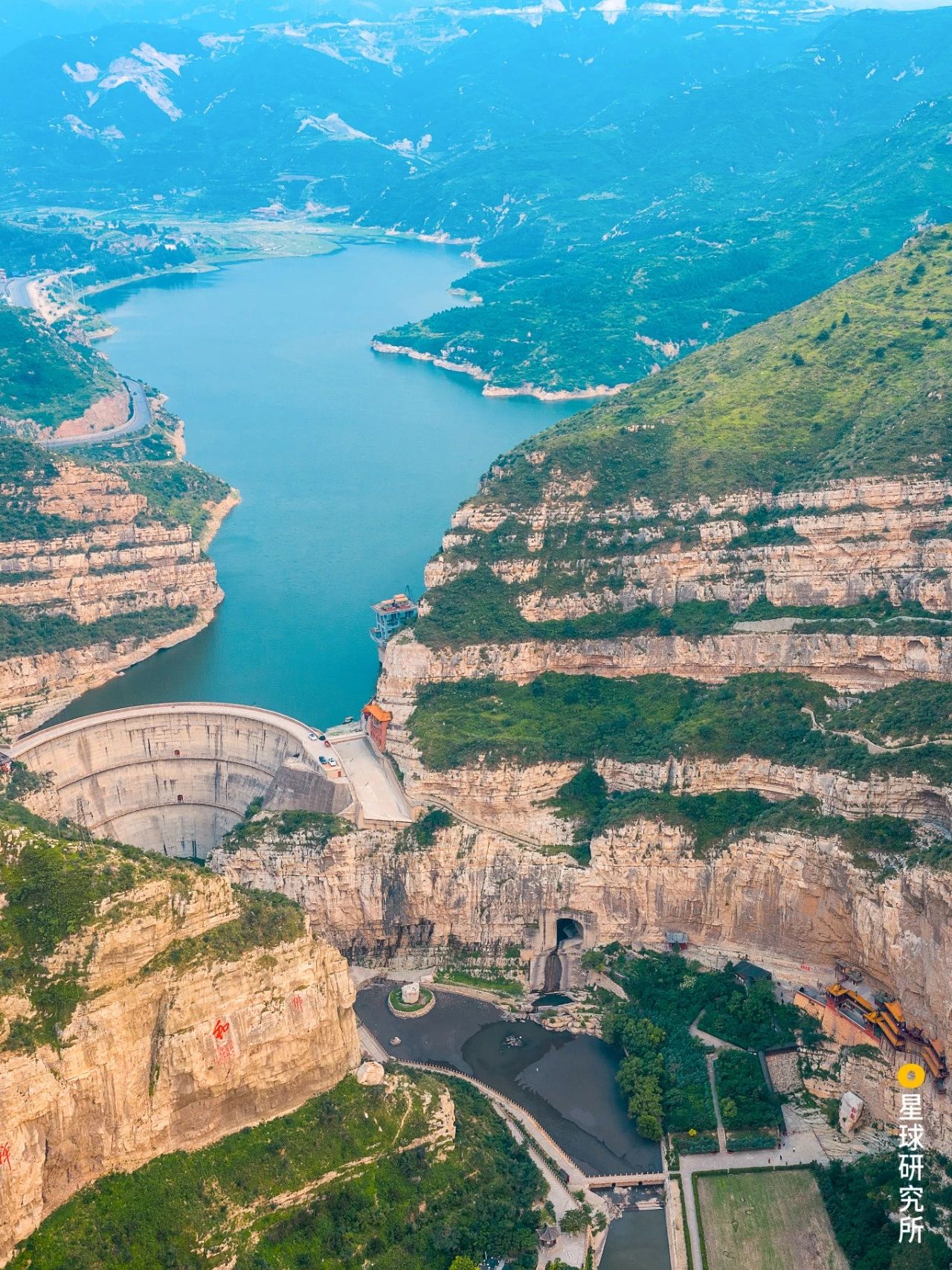 (恒山水库,1960年建成,以防洪为主,兼顾灌溉,右下为悬空寺,摄影师@杨柳岸)