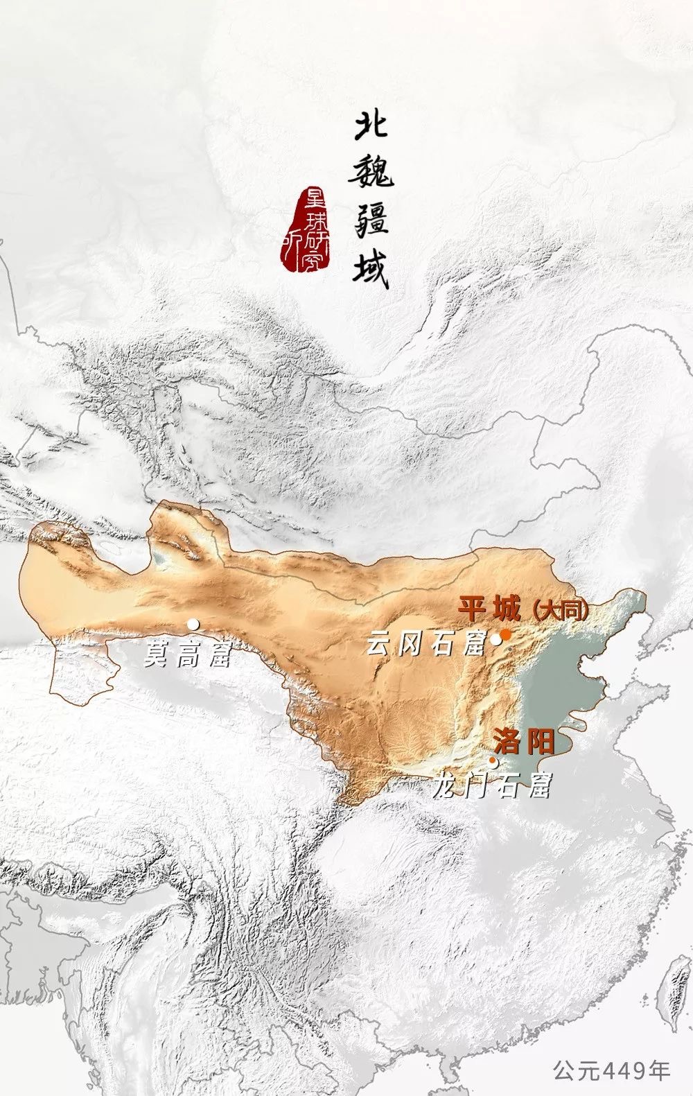 (北魏疆域,公元449年,制图@巩向杰&张靖/星球研究所)