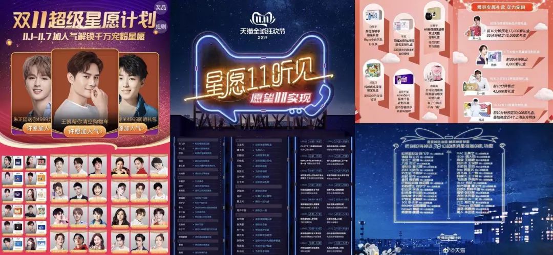 ** FUNJI(ID:FUNJIdata)** 整理了两大电商平台今年双11,在预售阶段所有和明星相关的活动玩法:
