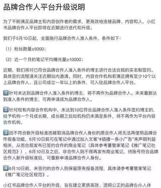 5月10日,小红书官方发布的一则《品牌合作人平台升级说明》,再度让这个近期已经争议缠身的平台雪上加霜。