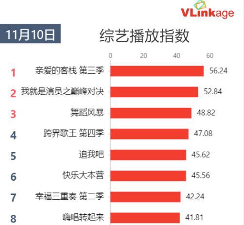 在Vlinkage综艺播放指数榜单上,《追我吧》第一期节目以50.68的成绩位列第二,远超同档期开播,并且上一季拥有极高口碑的《上新了故宫》第二季,同时也超越了开播多日,由罗志祥和谢娜担任主持人的《嗨唱转起来》。尽管这或许与其多视频平台分发有关,但作为一档首播节目能有如此网播数据,可见节目还是吸引了不少观众的注意力和关注。