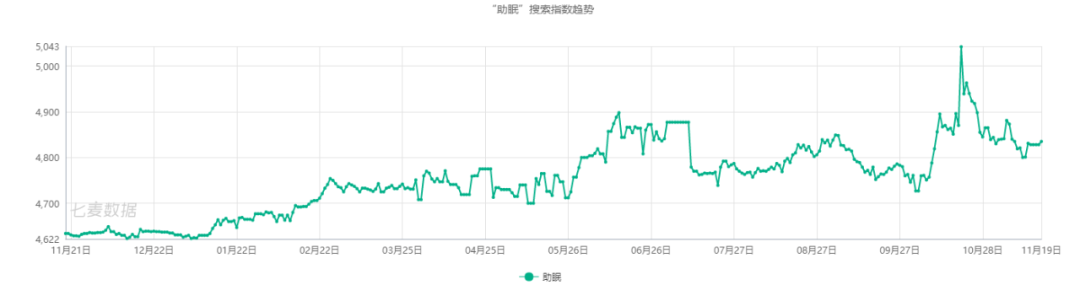 而从近一年的 App Store 关键词 “助眠” 搜索指数来看,期间虽有下滑状态,但整体呈上升趋势。搜索指数的上升也是在印证用户需求和热度的增加。
