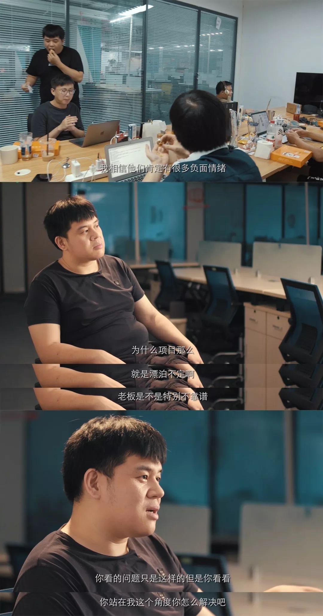 镜头一转,当他和员工谈心的时候,又一味要求员工站在老板的角度体会老板的不容易。