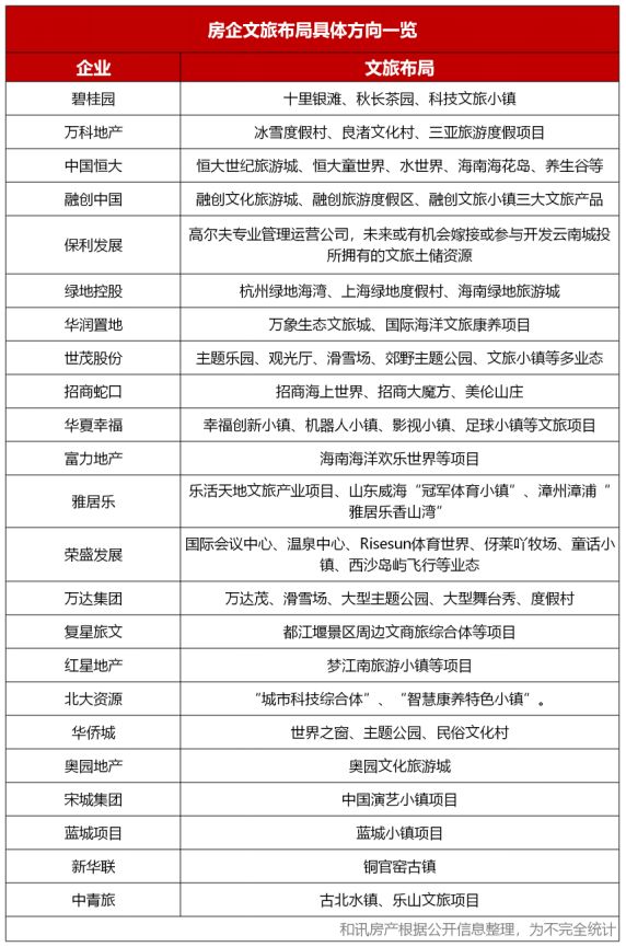 和讯房产综合梳理发现,百强房企中约有50多家布局了文旅地产,超过总量的一半。且有近十家成立了专门的文旅公司(集团),包括恒大、碧桂园、融创和保利发展等。