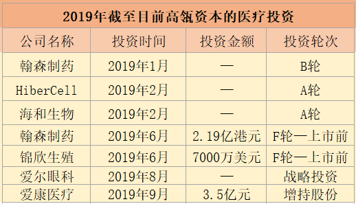 截至目前,公司已经完成了对翰森制药、锦欣生殖和爱尔眼科的布局。其中对翰森制药的投资力度最大,早在2016年初高瓴资本就对其进行了上亿元的A轮投资。翰森制药是以研发创新为驱动的制药公司,产品聚焦于抗肿瘤、抗感染、糖尿病等六大领域。其创始人钟慧娟为恒瑞医药创始人孙飘扬的妻子。