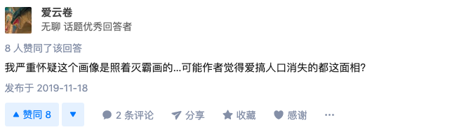知乎上还有网友调侃,认为该梅姨画像是作者受灭霸形象的影响过于深刻。