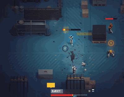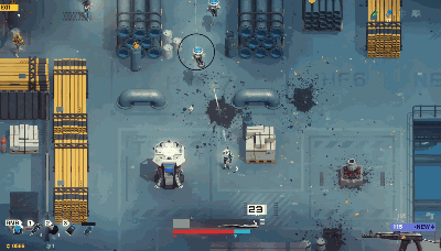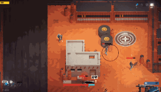 游戏的核心是它非常独特的射击系统。 表面上来看,这就是个普通的俯视角双摇杆射击游戏。 但是实际上这个射击系统的深度却非常接近FPS,武器的准心其实只是一个“命中概率”的提示,并不是指哪儿打哪儿。