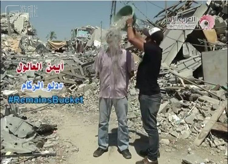 而在如巴勒斯坦等一些国家,还衍生出了其他版本的冰桶挑战。有人通过瓦砾代替冰水的做法,试图让全世界关注巴勒斯坦的战乱。