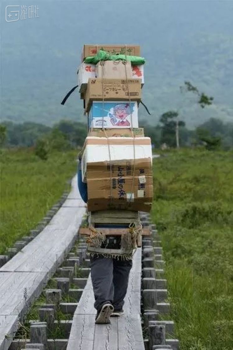 这份工作在中国被称为挑山工,而在日本,则被叫作“歩(bu)荷”。