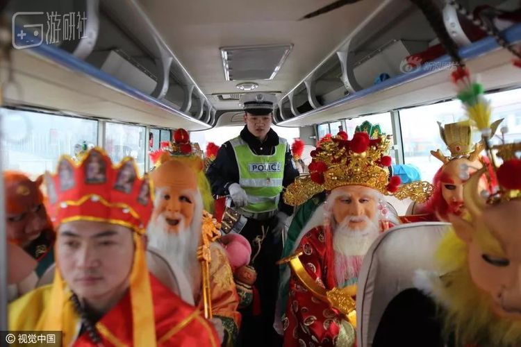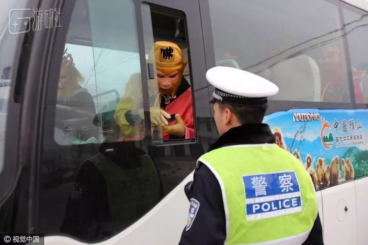 这辆由孙悟空驾驶的大巴车被交警拦下排查,等到上车查验,交警们发现车辆里面其实还别有洞天,唐僧师徒、龙王、土地、小钻风等一一在列。
