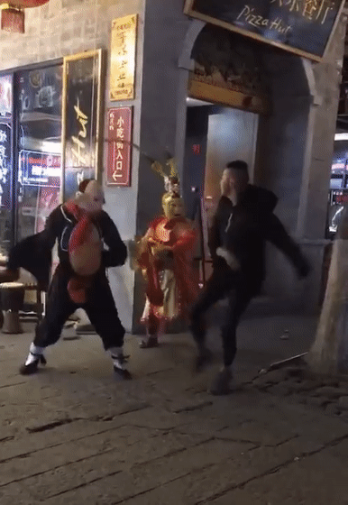 不过,有二师兄的帮衬下,孙悟空打老百姓还是有一战之力的。今年年初,在云南大理古城发生的孙悟空对战事件就有了不一样的战果: