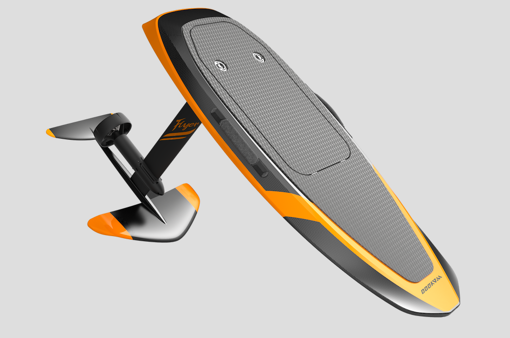 苇渡水上飞(Waydoo Flyer)这款产品将冲浪板与电池、驱动器、电机、螺旋桨和水翼结合,实现“伯努利原理”(和飞机起飞的原理同理),从而产生推力来把玩家从水中托起并且高速前行,给玩家带来在水面上“冲浪”的感觉。这意味着,在没有浪的情况下,用户也能“冲浪”,即使是在池塘、湖泊、河流等安全的平静水域也能“冲浪”。