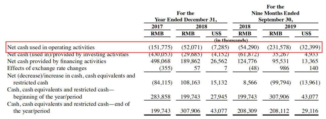 此外,优客工场在2017年、2018年、2019年前三季度,通过筹资活动产生的现金流分别为4.98亿、1.90亿、9553万。同期经营活动产生的现金流则为-1.52亿、-5207万和-2.32亿。按此计算,优客工场账面上的现金流大约半年就会烧完。