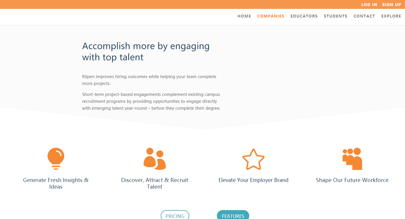 Riipen的独特之处就在于, 在该公司的平台上,学校能列出本校学生能提供的专门技能和服务,企业能列出其所需的服务。之后,双方可以就具体项目进行合作 。而且Riipen不仅可以将大学生和企业的项目相匹配,还可以使教师将企业创建的项目放到教学方案中。