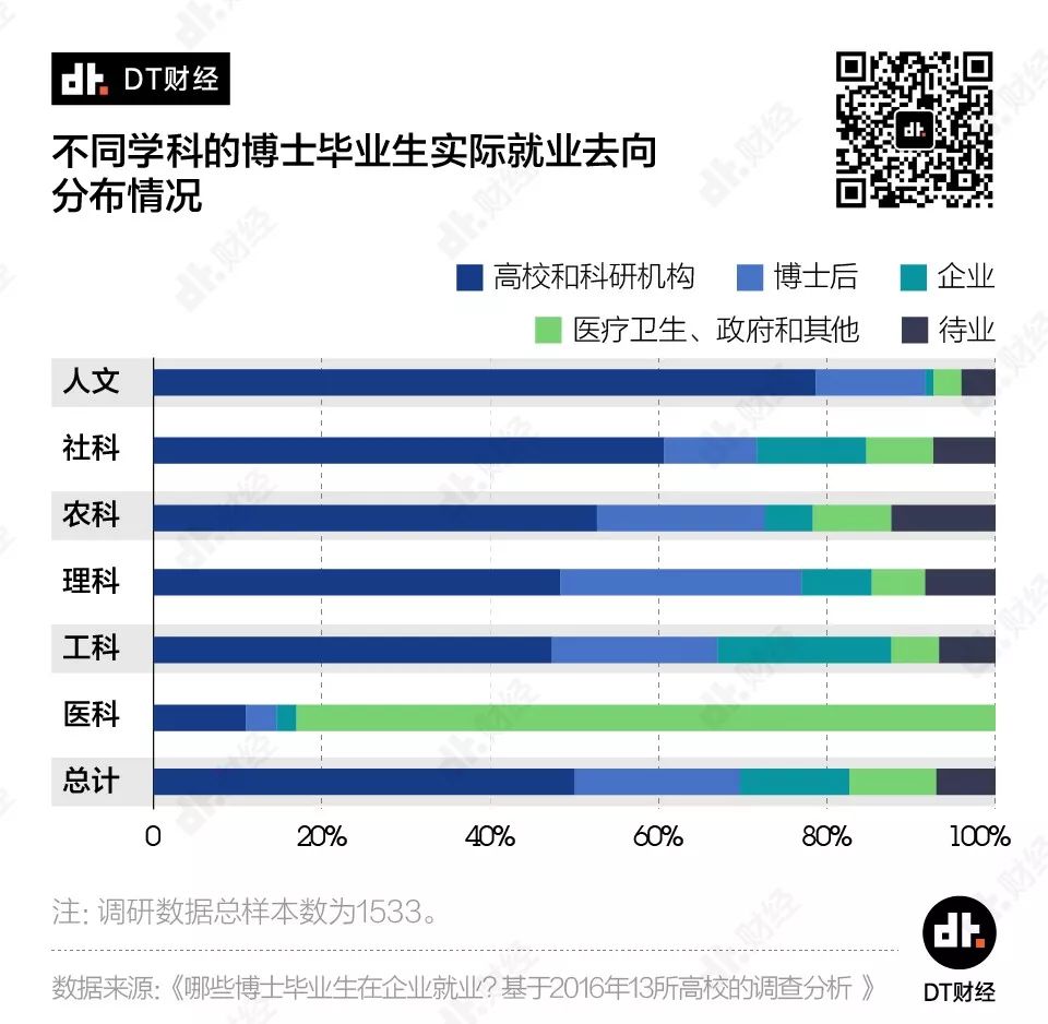 调查显示,2016年有将近80%的人文类博士和超过60%的社科类博士进入高校工作。工作机会相对减少的情况下,没有进入高校的文科博士大多会选择升学。