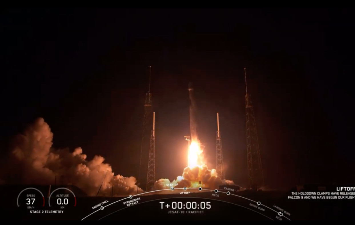 据悉,太空探索公司的“猎鹰”9-1.2型运载火箭12月16日在卡纳维拉尔角空军站发射了由新加坡创企Kacific宽带卫星集团和日本天空完美日星公司共享的Kacific-1/“日本通信卫星”(JCSAT)18高通量卫星。火箭于美东部时间19时10分(北京时间12月17日8时10分)在卡角空军站第40号发射台点火起飞。星箭分离定于33分钟后进行。这是“猎鹰”9火箭11天内第二次从该发射台发射,创下了太空探索公司同一发射台两次发射之间用时最短的纪录。