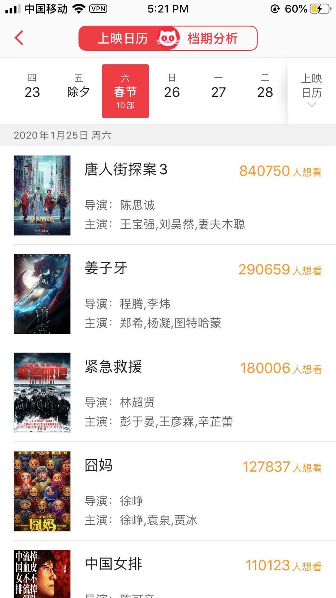 《唐人街探案3》是老系列带来的高热度,《姜子牙》则是新爆款带来的高期待。目前,《姜子牙》的猫眼想看27万,作为种子电影里定档较晚的电影,想看人数远超年初就已经定档的《紧急救援》和《囧妈》。