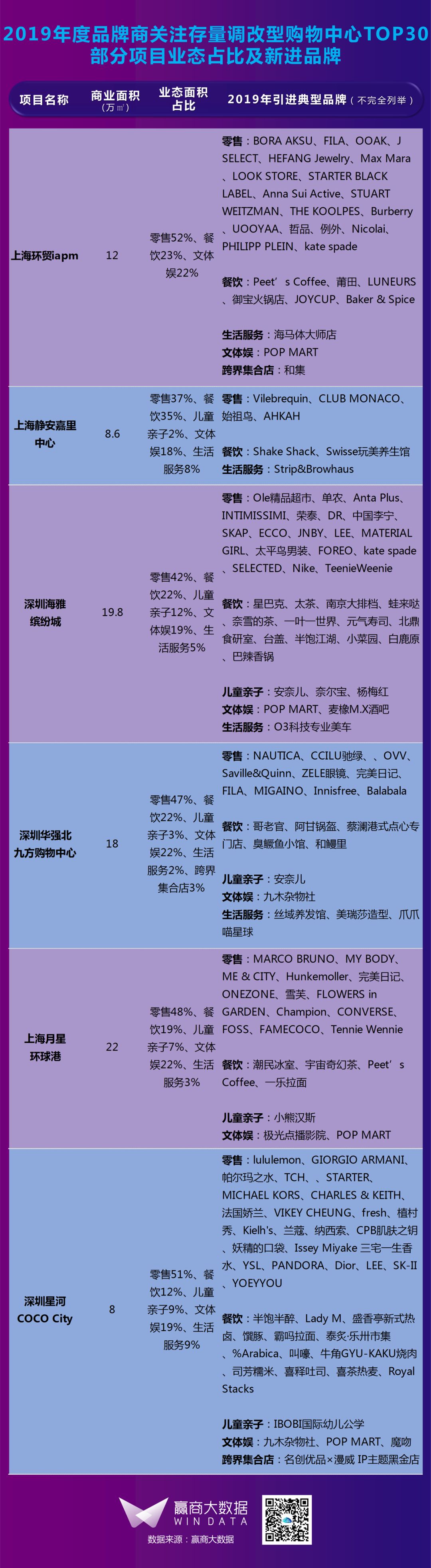 以下分析报告将对上榜项目业态/品牌调整、城市/商圈/体量分布、规划/设计创新等方面进行整体特性分析,为品牌拓展和项目创新提供决策参考。
