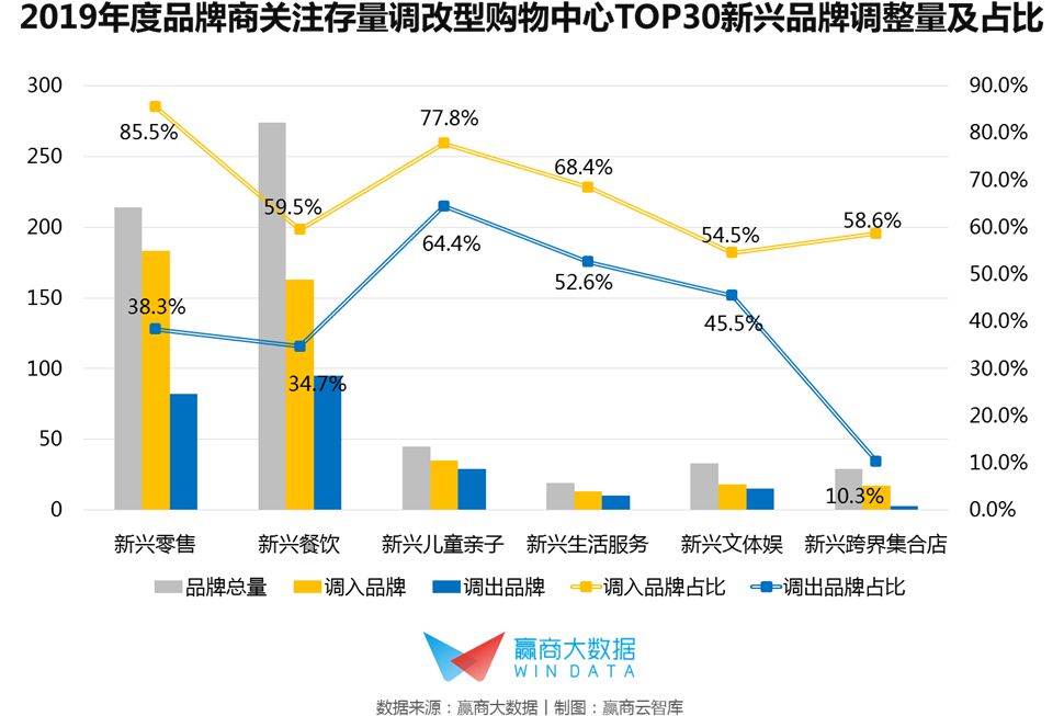 从TOP30项目2019年的新兴品牌调整上看,6大业态均呈现上调趋势;存量调改求“快”求“新”,新兴品牌是优质的存量项目的调改首选项。