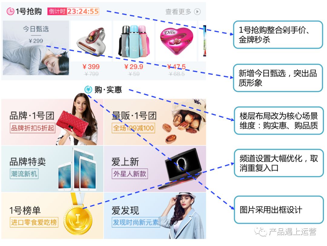 为了把商品做浅,提升首页商详到达率,我们尝试打捞出频道爆款商品铺在首页,通过首页直达,改版后如下: