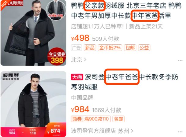 如今打开淘宝,原本爸爸专属的羽绒服样式,已经悄悄变得更加轻薄、个性,“ins风”、“国潮”、“时尚”等新标签成为搜索时自动生成的关键词。