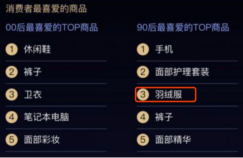 这句话放在两年前,绝对不是误解。2017年的《淘宝双12消费报告》显示,70后和80后才是羽绒服的消费主力,但今年,主角变成了90后。最新榜单显示,羽绒服已经进入90后消费者喜爱的TOP5商品。