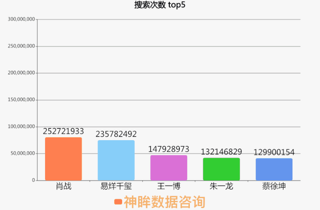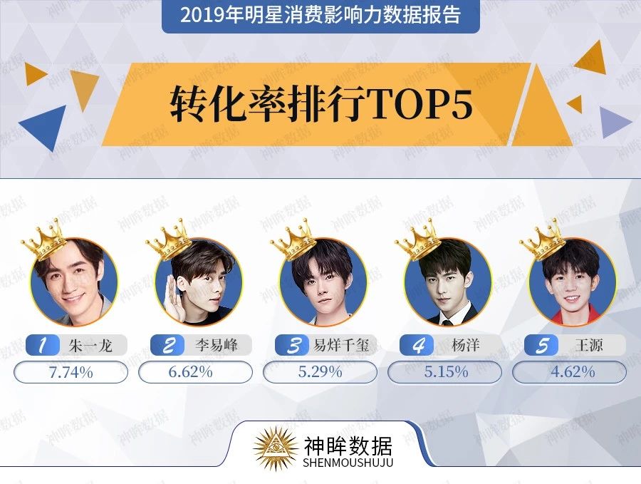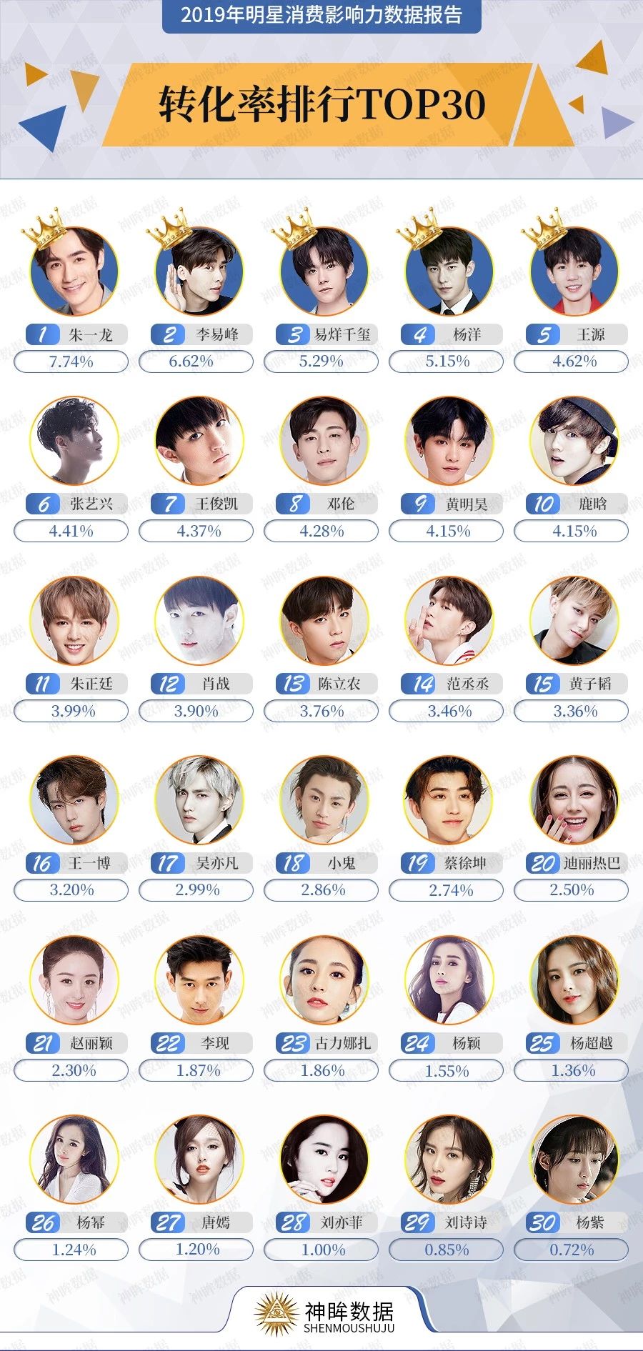 神眸数据咨询研究了了「淘宝 + 天猫」全终端的数据海洋里,从中筛选了三十位热度靠前的明星艺人,挖掘出近一年用户在「淘宝 + 天猫」体系内搜索这些人名的频次,以及每个关键词对应的点击率、转化率和交易额等数据,并将其整理成报告。