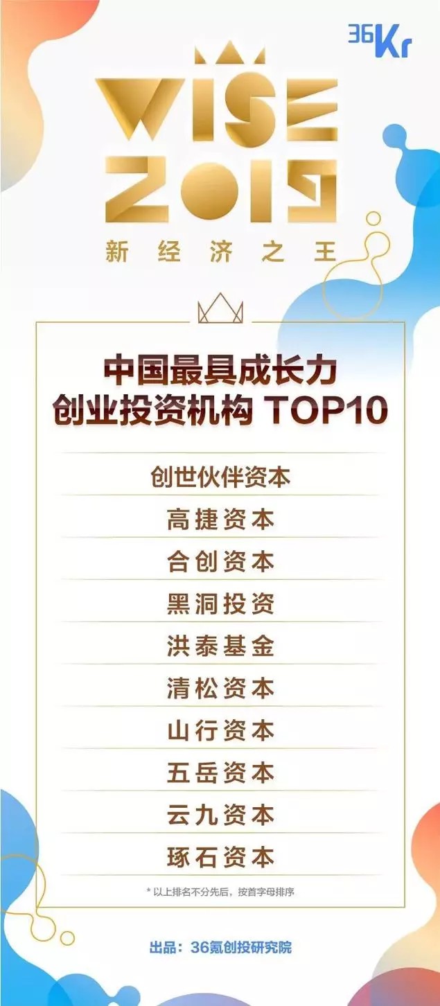该榜单根据36氪平台数据和投资机构过往三年的业绩,评选出在投资业绩方面有持续增长的最具成长力的创投机构。以下为具体榜单: