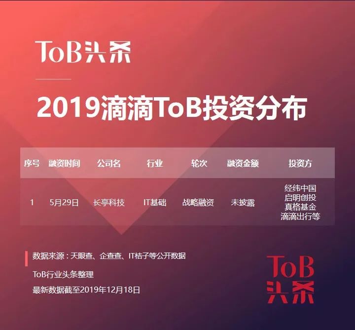 与2018年不同的是,2019年的巨头ToB投资盘点,我们 将京东、字节跳动和滴滴(美团2019年没在ToB市场进行投资)加了进来。