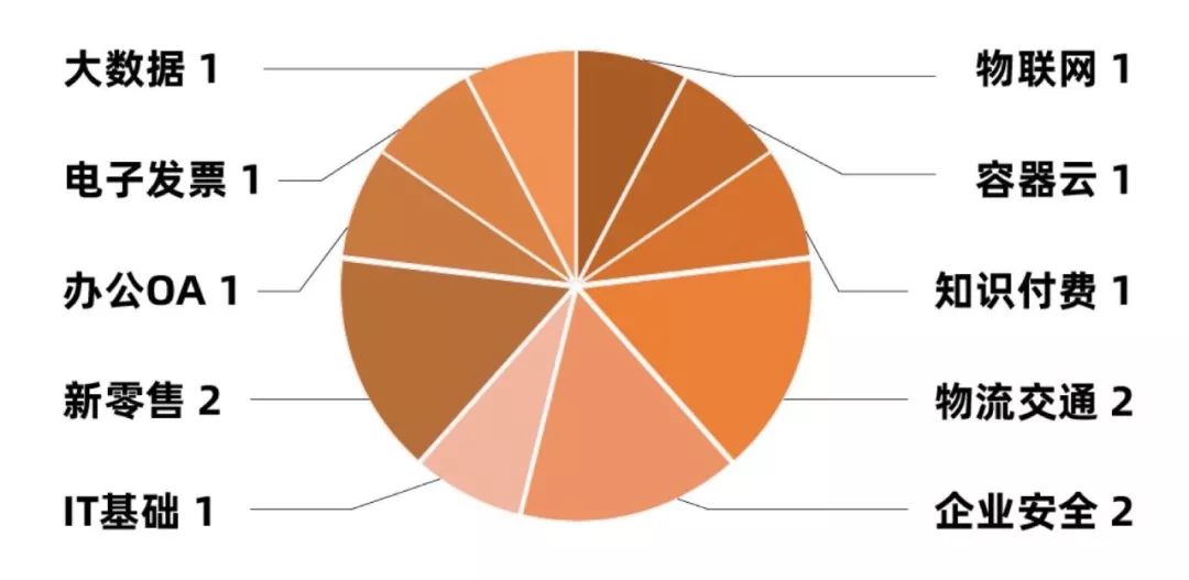 从BAT的投资赛道来看,除了百度主投人工智能比较明显以外,腾讯、阿里在ToB市场的投资分布赛道繁多。