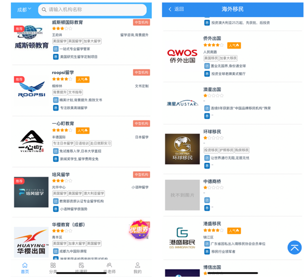 榴莲说平台上入驻的机构已经覆盖了包括留学前(语言培训,留学中介等)、留学中(留学生活服务)、留学后(求职,移民等)在内的国际教育全产业链服务。