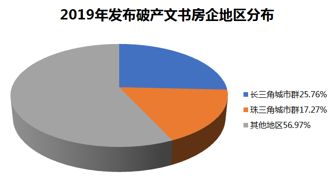 值得注意的是,今年发布破产文书的房企主要分布于长三角与珠三角城市群。据中指研究院统计,分地区来看,申请破产的房企中,位于长三角与珠三角两个城市群的占比分别为25.76%和17.27%,两个区域占总数量的43%。