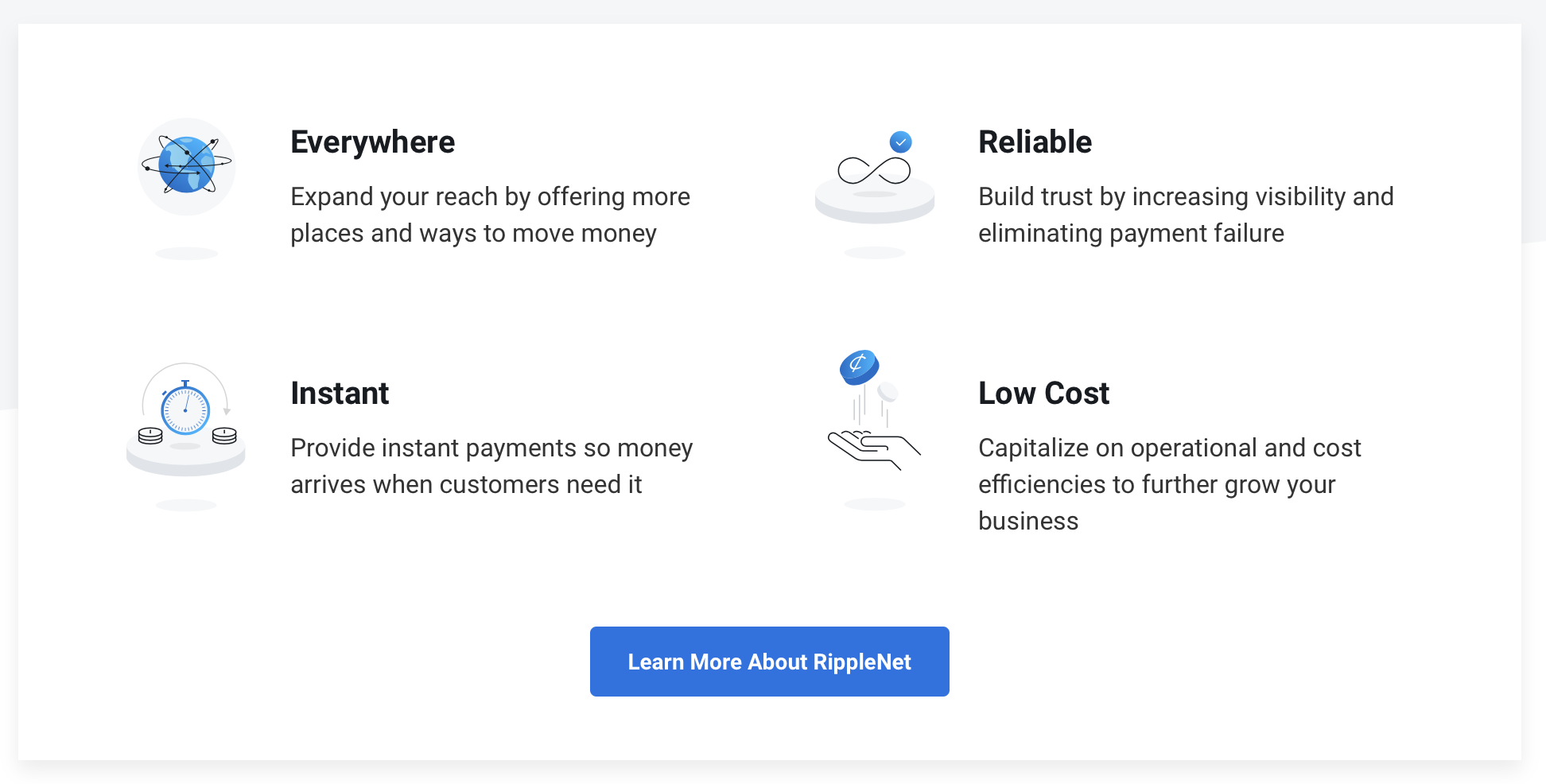 「Ripple」认为,加密货币,尤其是 XRP,是促进跨境交易的好方法。与传统的外汇方案相比,加密货币既快速又便宜。「Ripple」一直尝试说服金融机构改用 RippleNet 作为国际支付的后端货币。